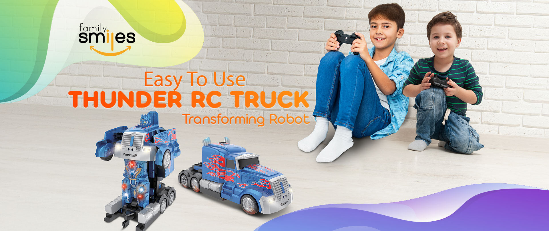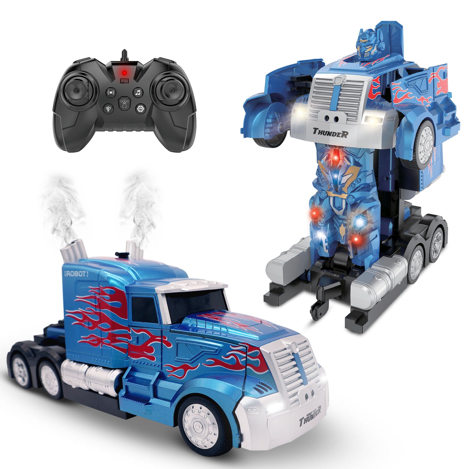 Family Smiles Kids Remote Control Toy Car Thunder Truck Transforming Robot RC Vehicle Toys Boys Age 8-12 Extra Battery
