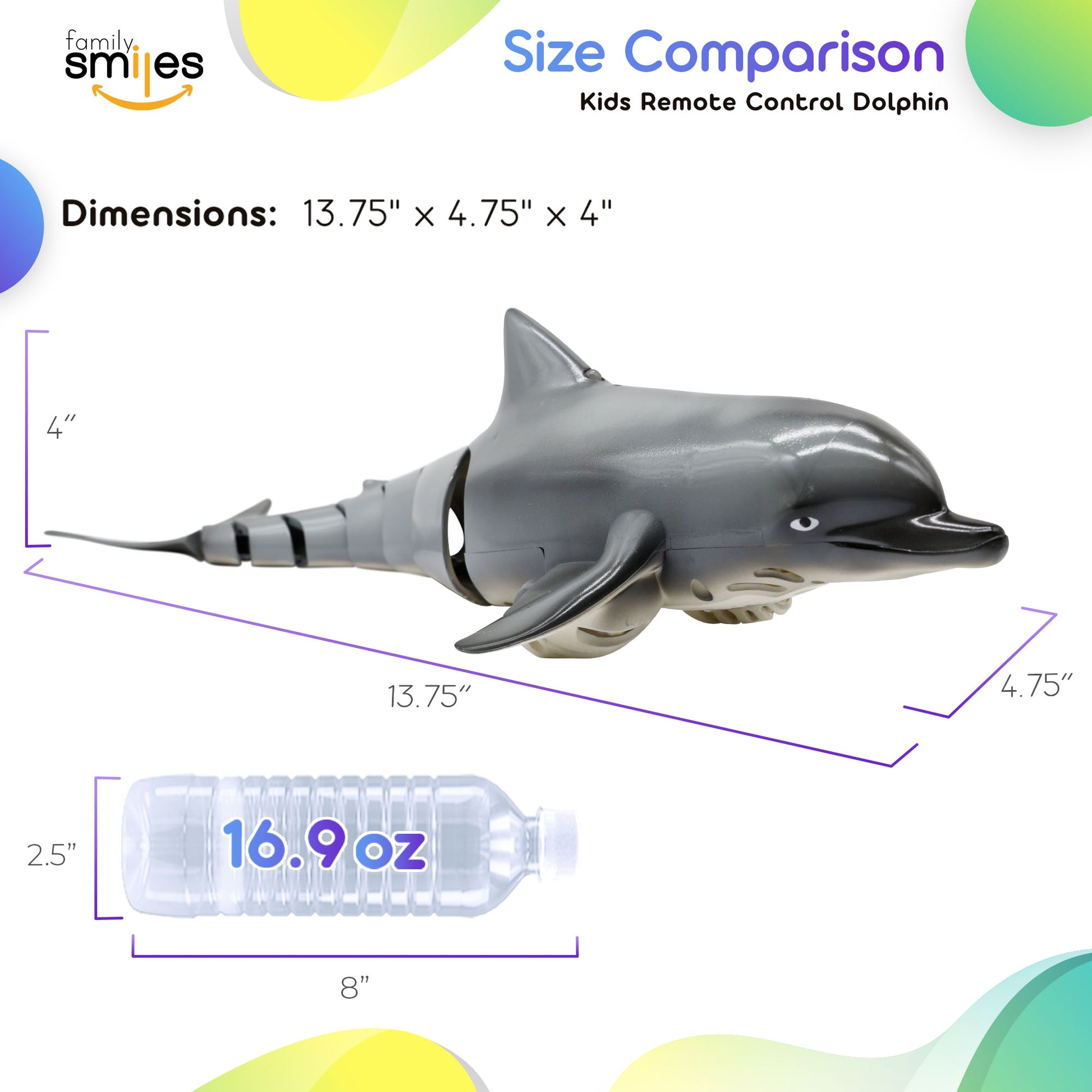 - Dolphin Toy Size 13.75" x 4.75" x 4" | RC Requires 2AA Batteries (Not Included)