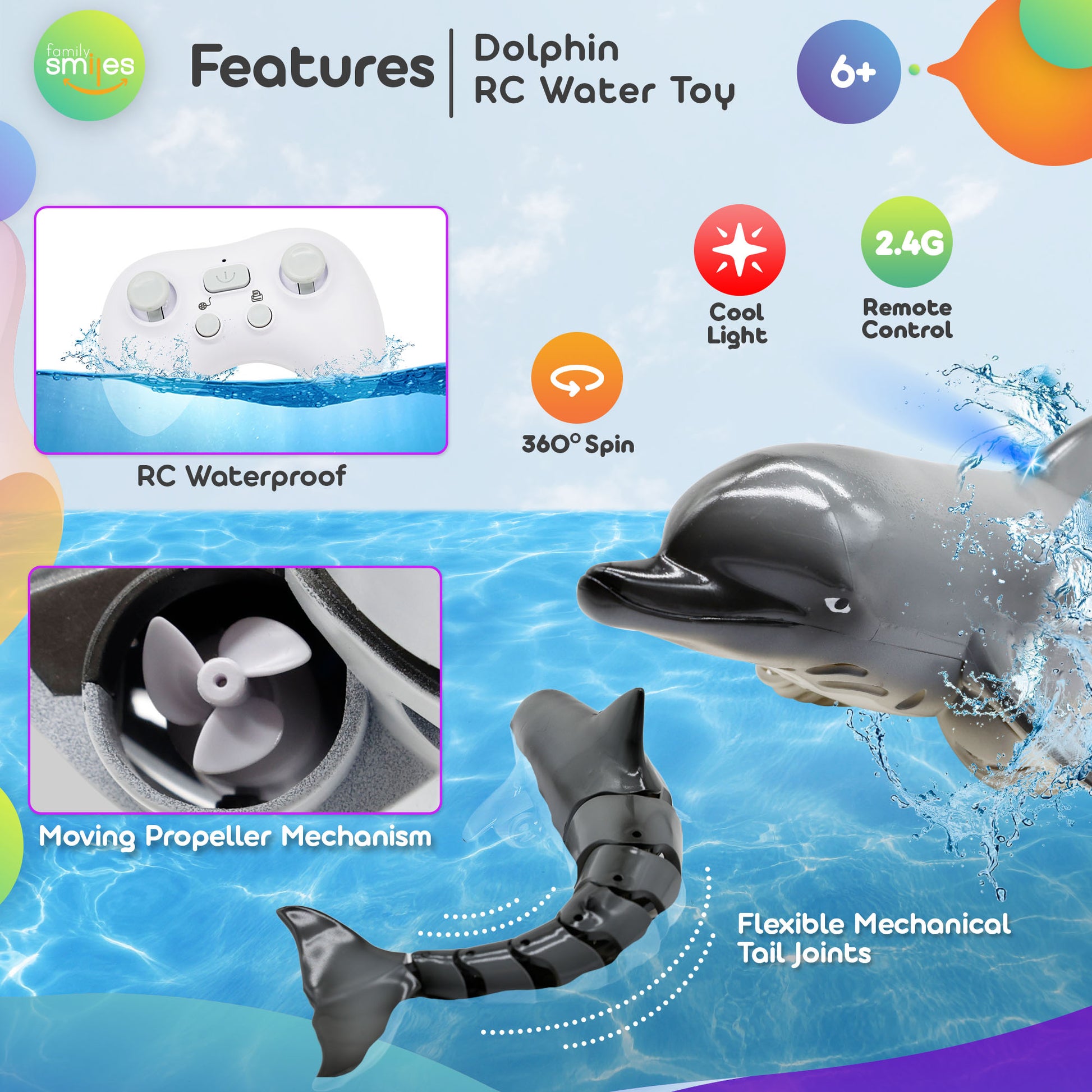 Family Smiles Kids RC Dolphin Pool Bath Toy Remote Control Water Toys For Boys Girls 6+ Years Gift