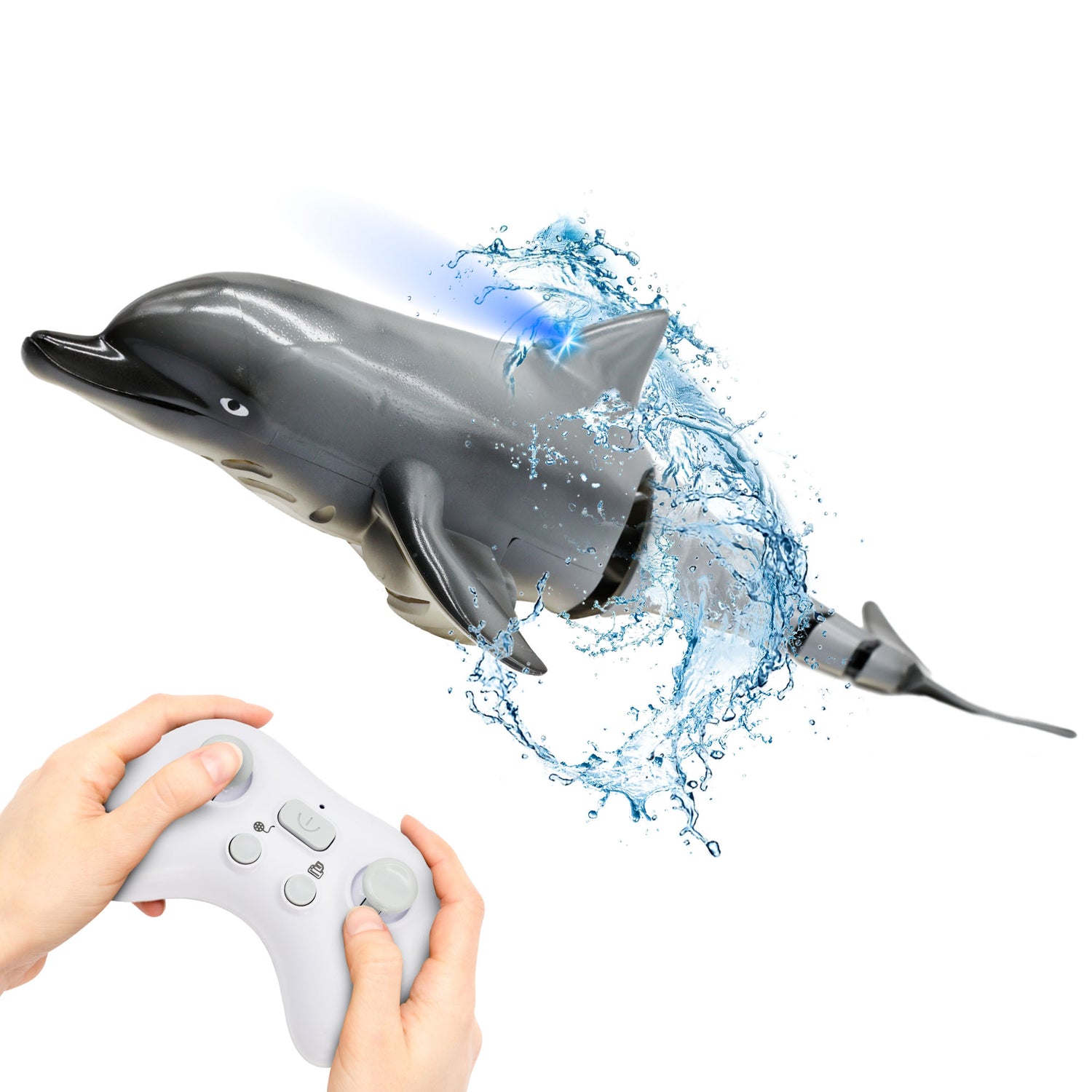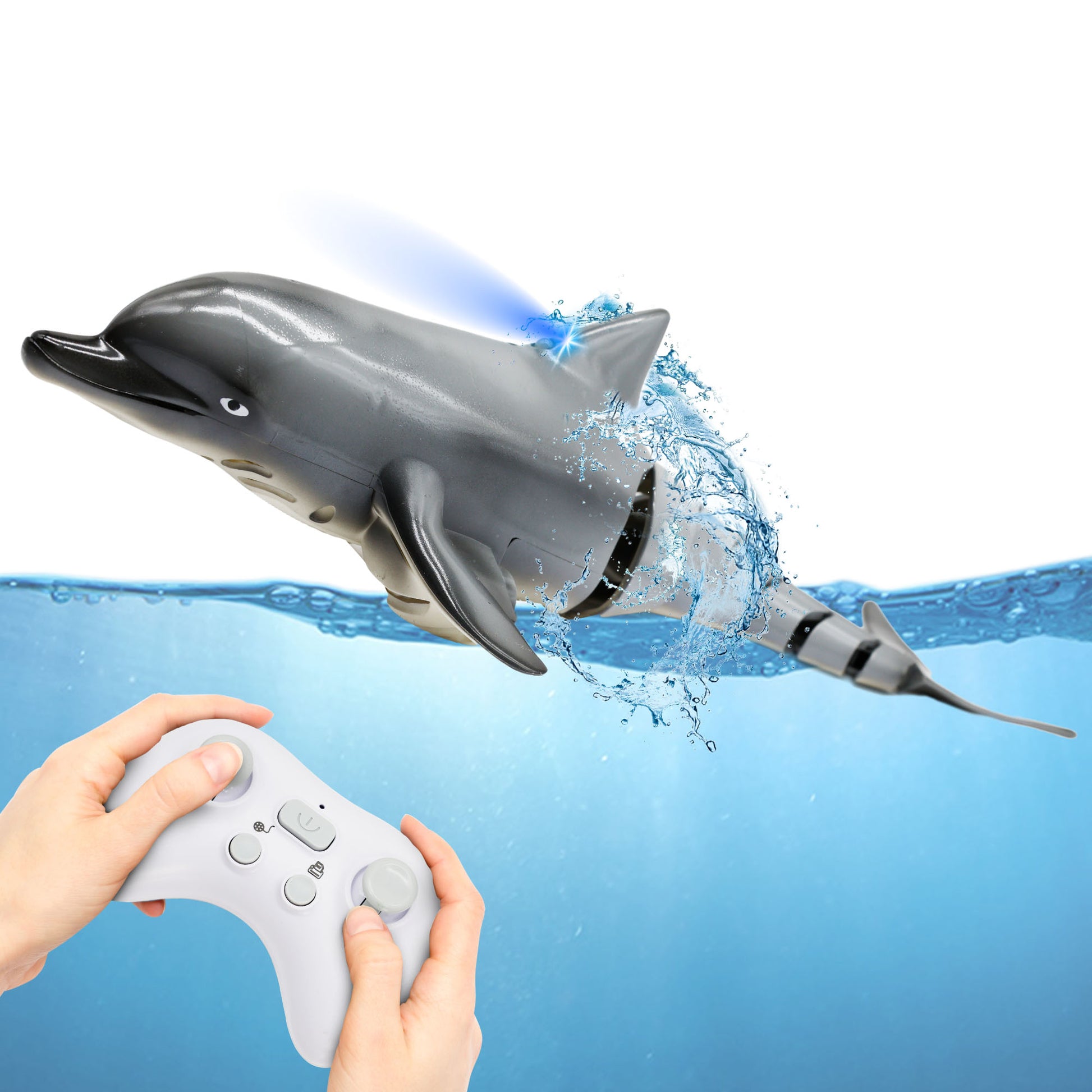 Kids RC Dolphin Pool Bath Toy | Lights | Water Spray | Dual Propellers | Perform 360° Spins