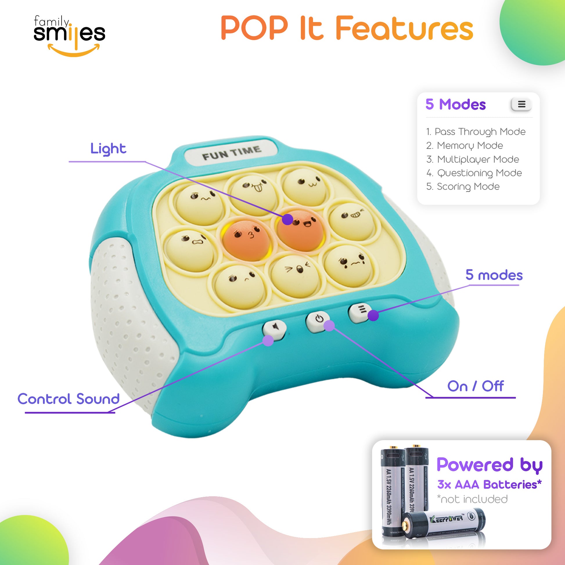 Family Smiles Pop It Fidget Music Puzzle Game Kids Light Up Bubble Push Sensory Toy is the perfect choice for both children 3+ and adults to have fun and spend time together.