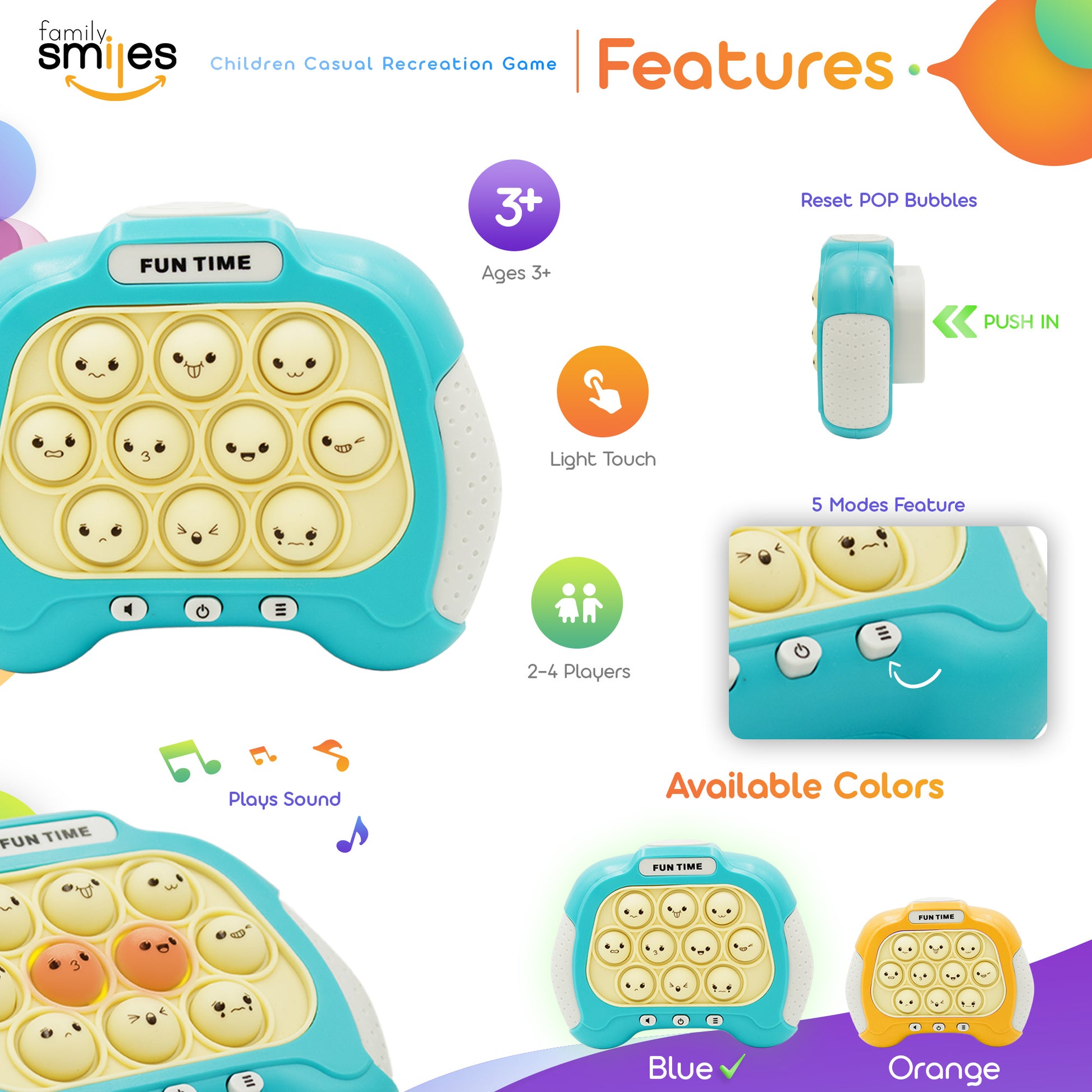 Family Smiles Pop It Fidget Music Puzzle Game For Kids is the perfect gift choice for your child on Birthday, Christmas, Back to school, Easter, and New Year's parties.