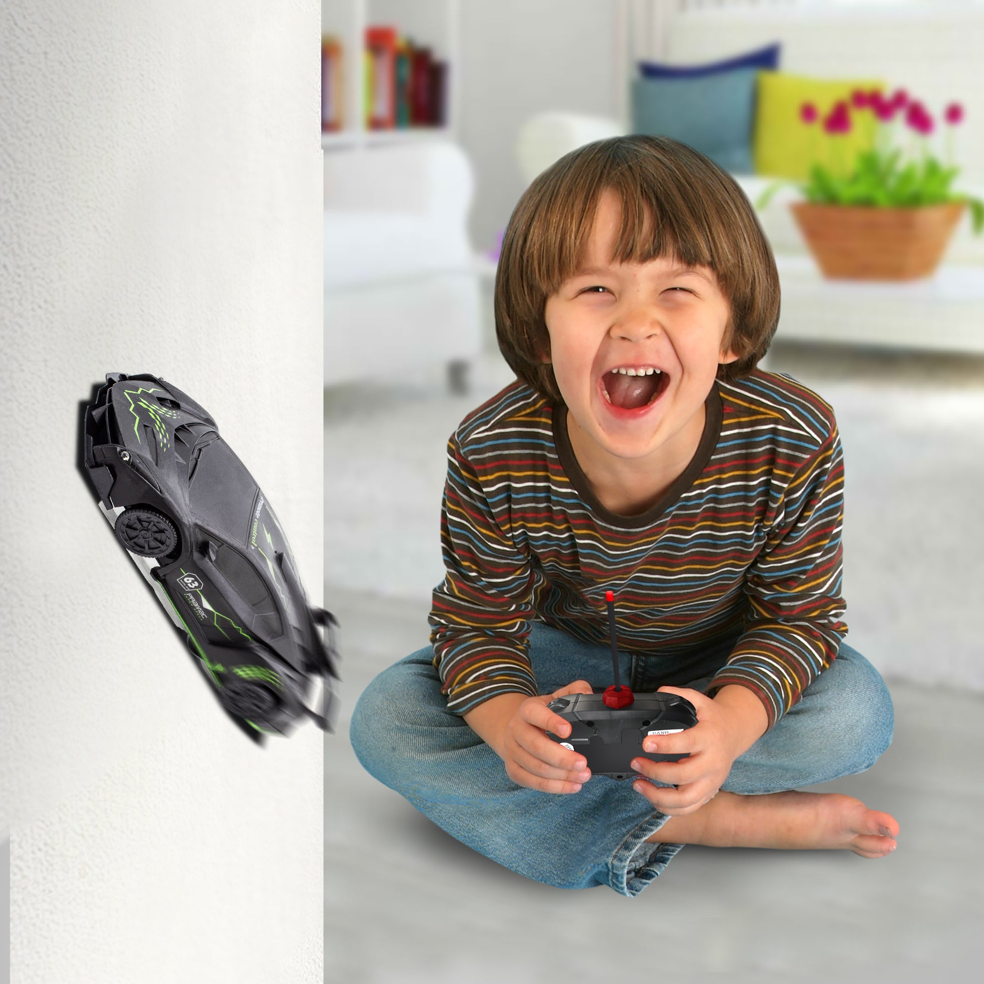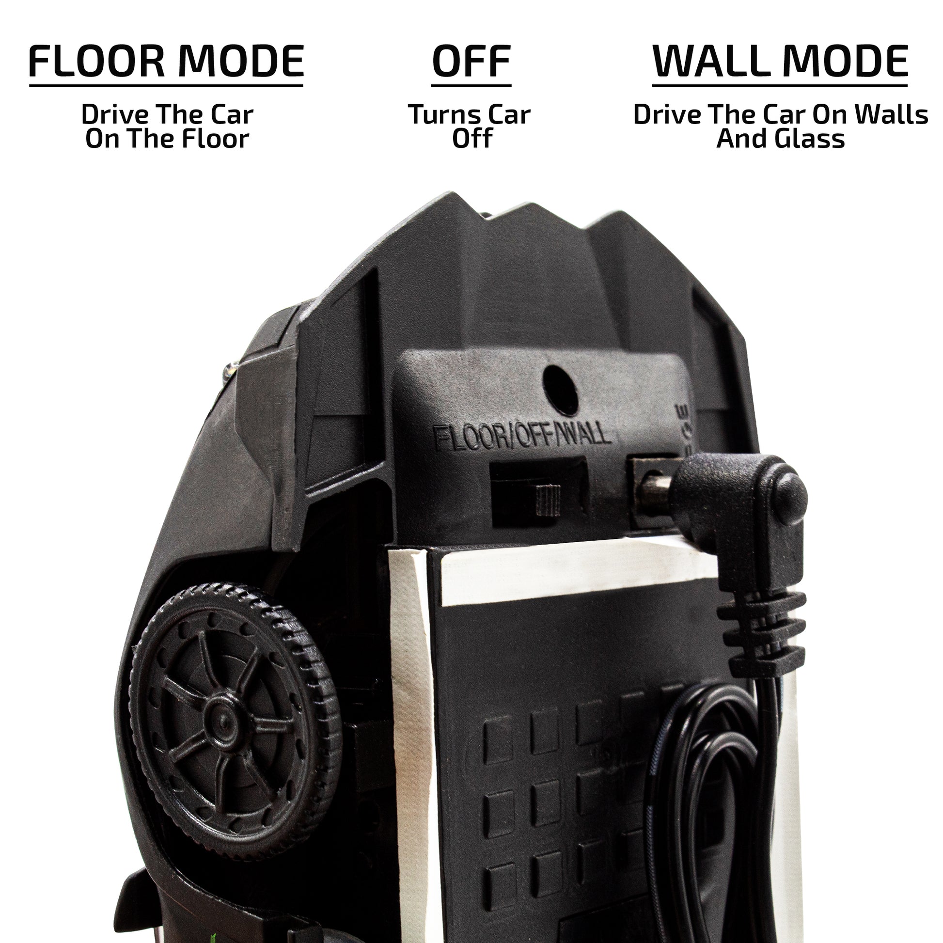 Activate the powerful vacuum and watch your RC Car climb: Walls and Windows.