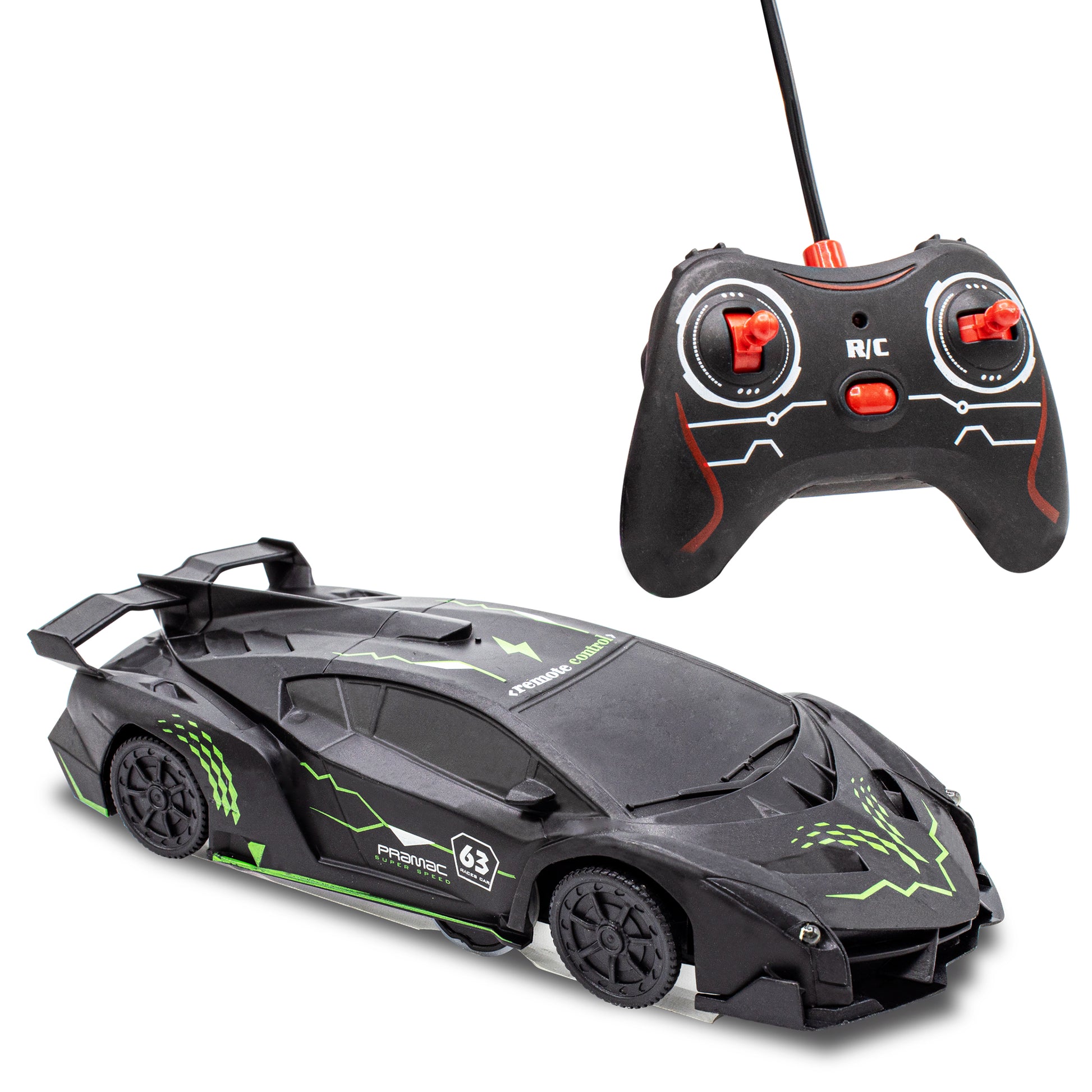 The multi-channel Remote Controller has a rechargeable Lithium battery and will let you grab friends and have a ball racing on the walls!