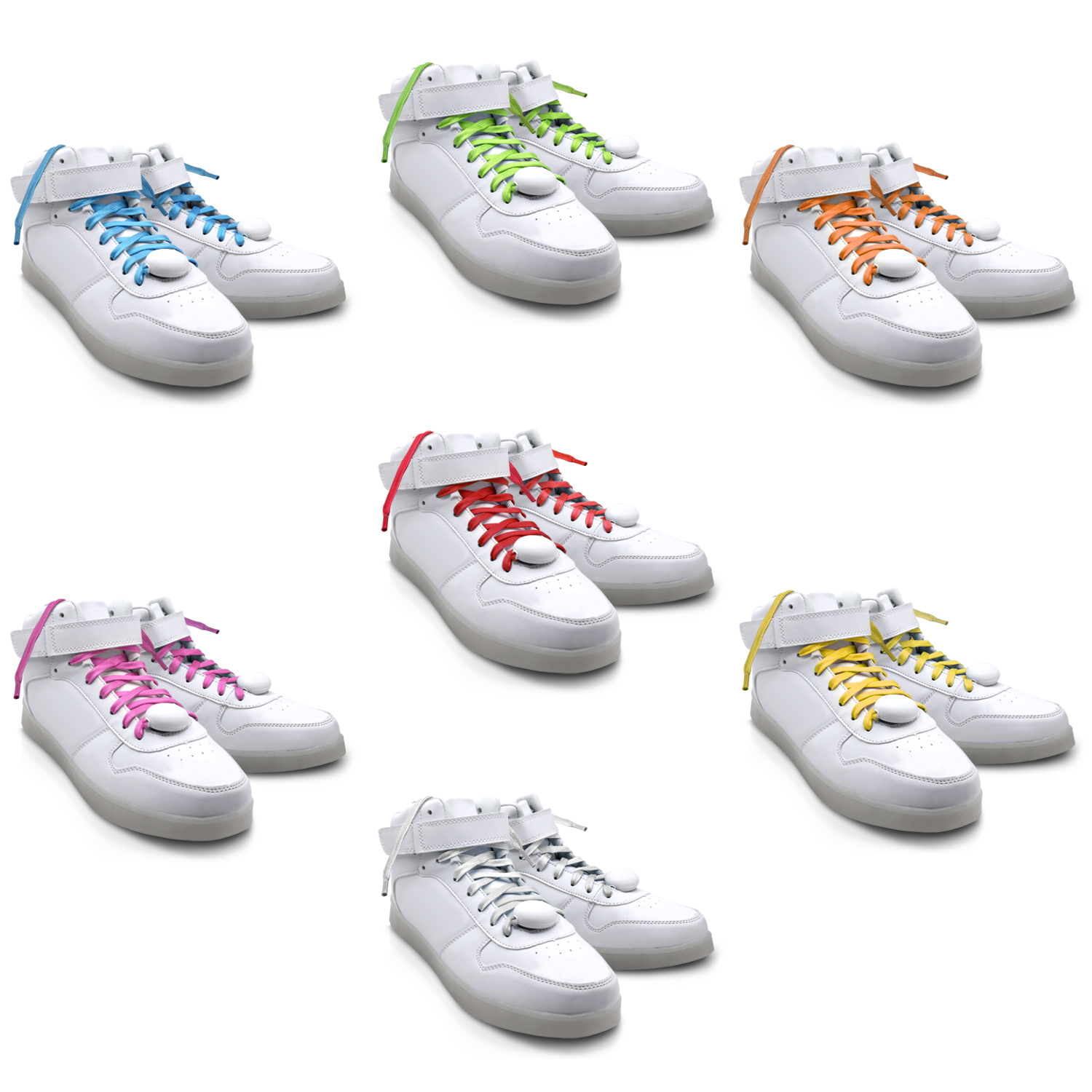 Already have a pair of LED Shoes? Even better! With 7 colors to choose from, White, Orange, Pink, Yellow, Blue, Red and Green, you can mix and match your laces with your kicks to compliment your unique style. The included batteries last for days on end and can easily be replaced when your glow starts to fade. Even when powered off, these laces are made with reflective material so people can still see you coming even if your LEDs aren’t turned on.