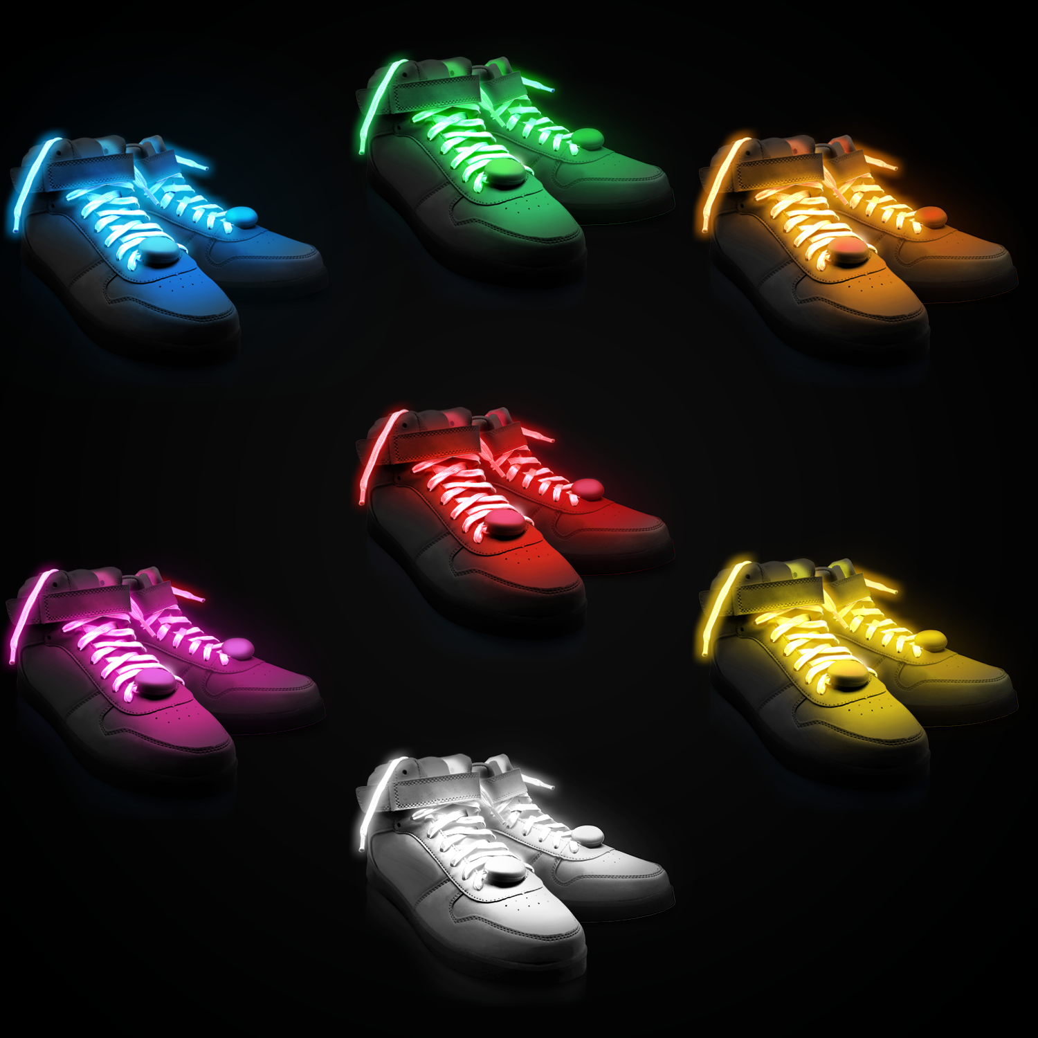 Set yourself apart from the crowd! Lace up your shoes with LED Light Up Shoelaces and you’ll get attention from everyone on the dance floor! Brighten up any pair of lace up shoes from sneakers to roller blades and everything in between.