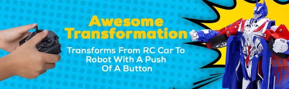 With 2 in 1 combination of car and robot, you can easily transform the RC Toy Car from Car Mode to Transforming Robot Mode with a push of a button. Excellent 2 Band Remote options allow your kids to play simultaneously with 2 or more kids remote control cars. The Transforming Robot Car comes with cool LED headlights and the RC robot has awesome sounds when you speed up, move forward, backward, turn left, and turn right.