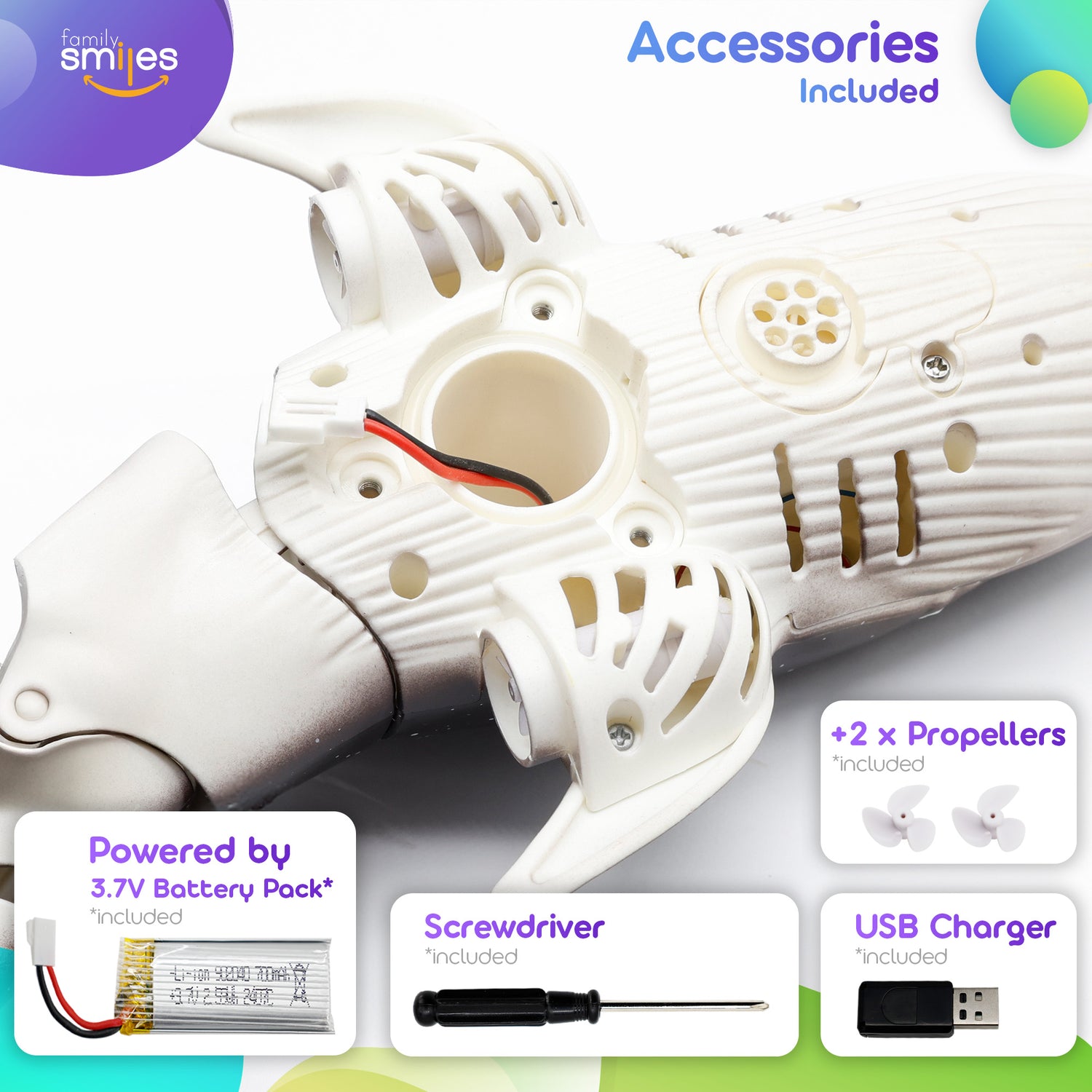 - Kids Remote Control Shark Toy Features Included 3.7V Rechargeable Battery Providing Reliable Power For Long Play Sessions | Comes With A USB Charging Cable Ensuring Easy And Convenient Recharging
