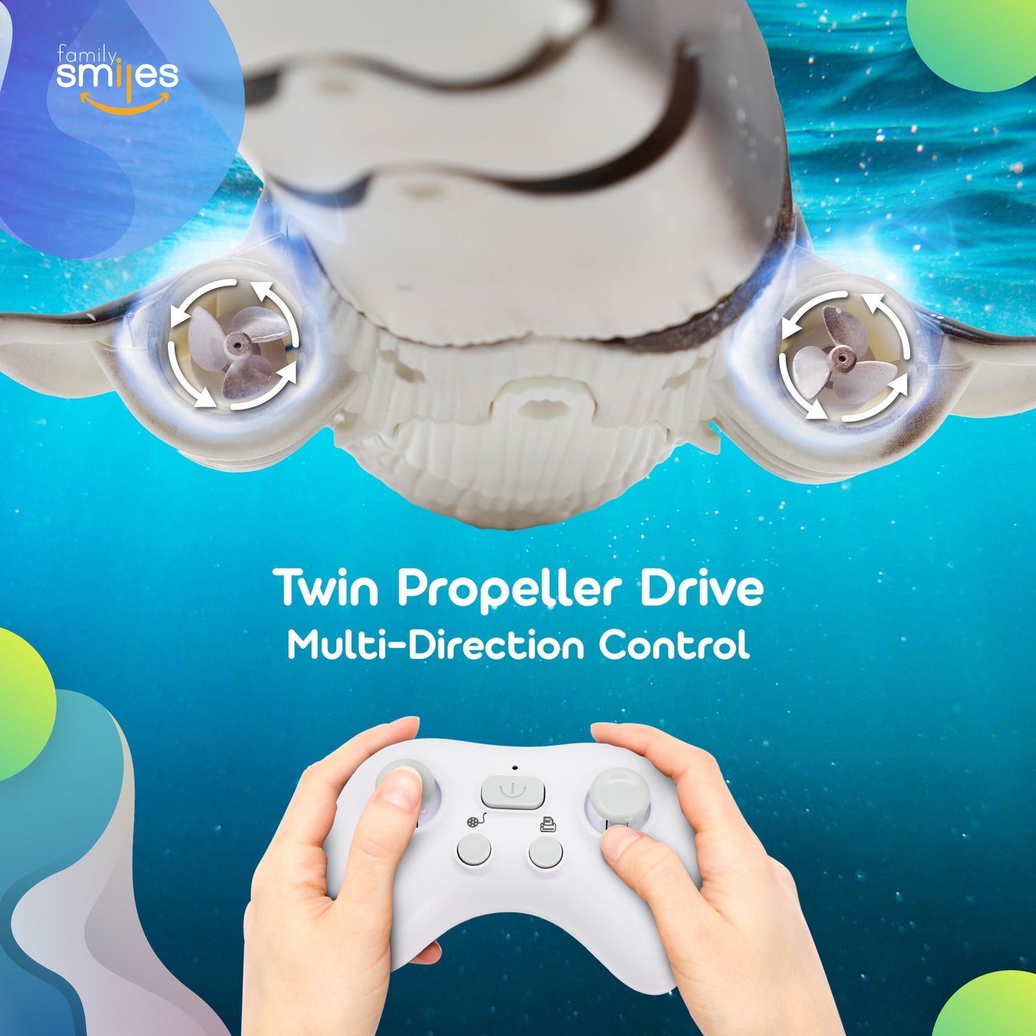 - Kids Remote Control Pool Shark Toy Features Cool Lights, Water Spray Function | Dual Propellers For Realistic Swimming Action | RC Shark Toy Can Perform 360-Degree Spins | Perfect Swimming Pool Toy