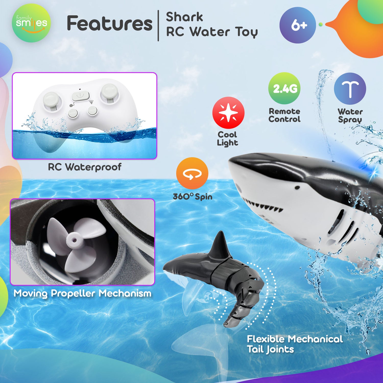 - Remote Controlled Water Shark Toy Features An Easy To Use Waterproof Remote Controller Ensures Smooth And Intuitive Operation | 2.4GHz Remote Built To Handle Splashes During Play