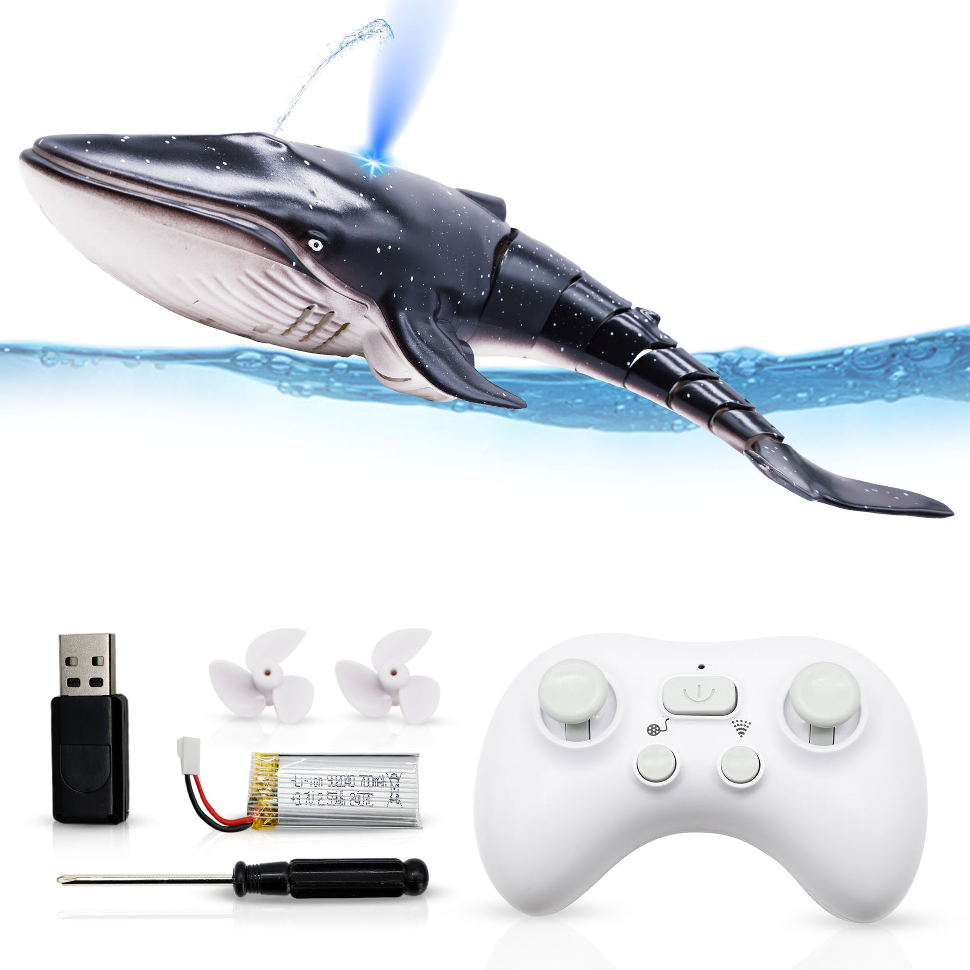 - Kids RC Whale Pool Bath Toy | Lights | Water Spray | Dual Propellers | Perform 360° Spins