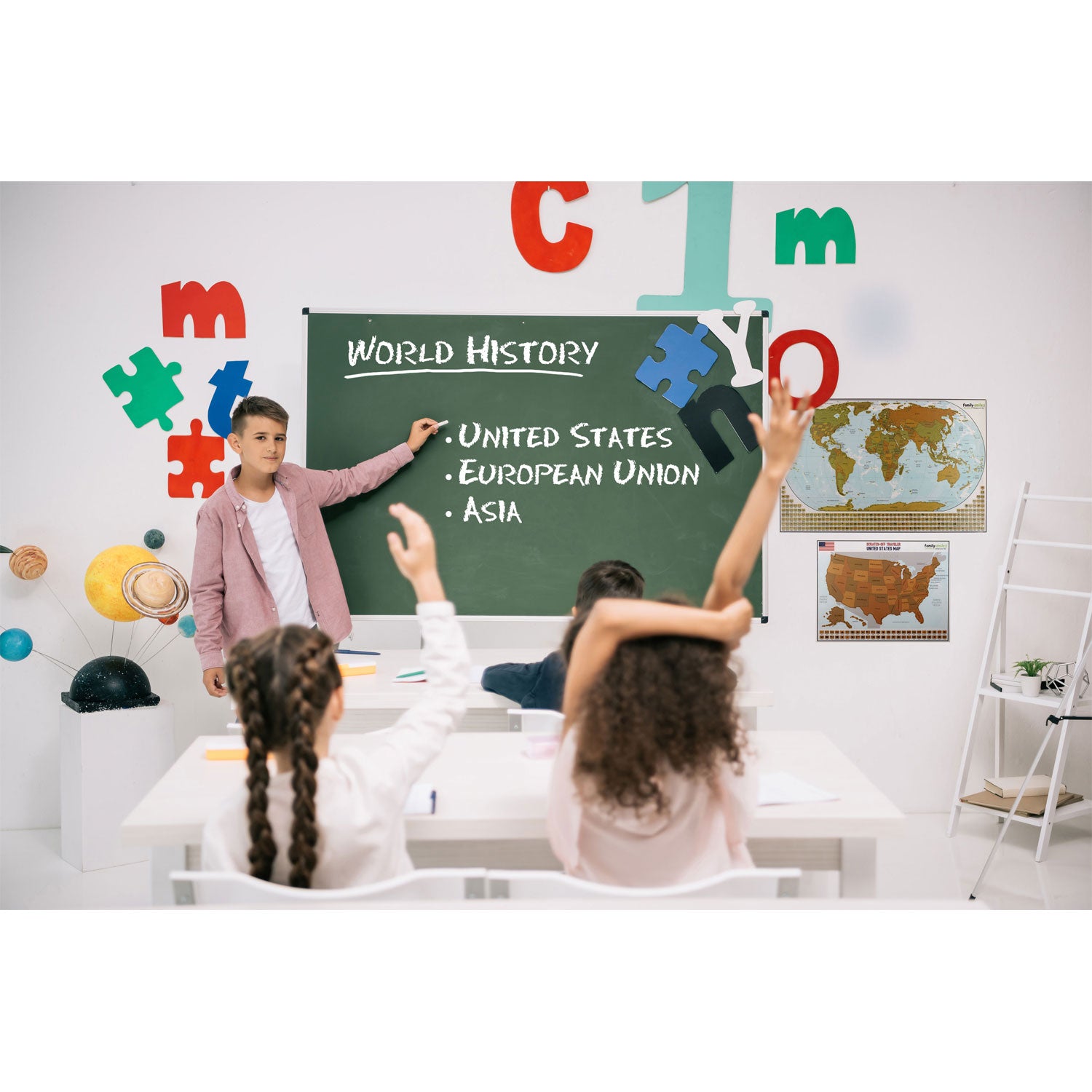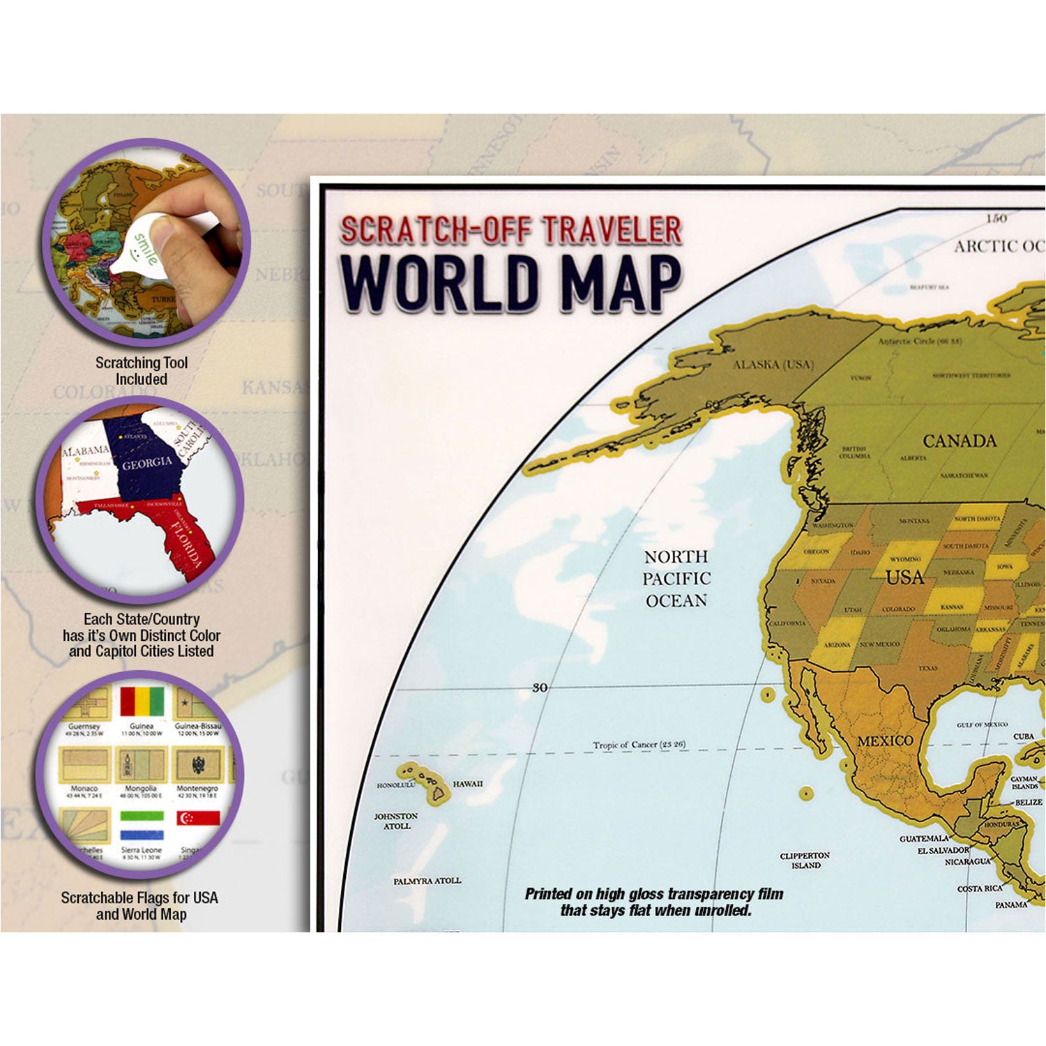 Each map comes with scratch-off state and country flags and detailed geographical landmarks such as mountain ranges and rivers. The World and USA Map kit includes practice cards for you to perfect your scratching technique as well as memory stickers to label your favorite vacation destinations.